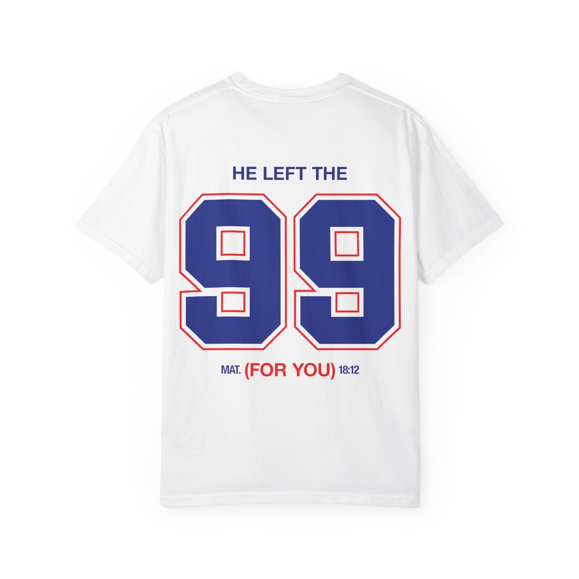 A relaxed, garment-dyed cotton tee that speaks softly but clearly. The front features a small, centered message in red lettering — “HE WILL WAIT.” — while the back uses bold varsity-style numbers and text: “HE LEFT THE 99” with a subtle scripture reference beneath. The heavy 6.1 oz ring-spun cotton feels substantial yet broken-in thanks to post-construction dyeing. Tubular knit and double-needle stitching give a clean silhouette and long-lasting wear. Wear it layered under a jacket for quiet confidence or solo as a statement piece that blends faith-driven reminder with sporty graphics.